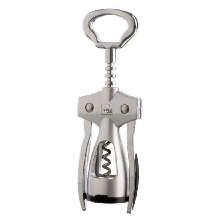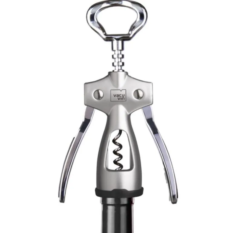 Vinåpner korkskru sølv fra Vacu Vin. Vacuvin Winged korketrekker har robuste spaker som gjør det lettere å åpne en flaske vin