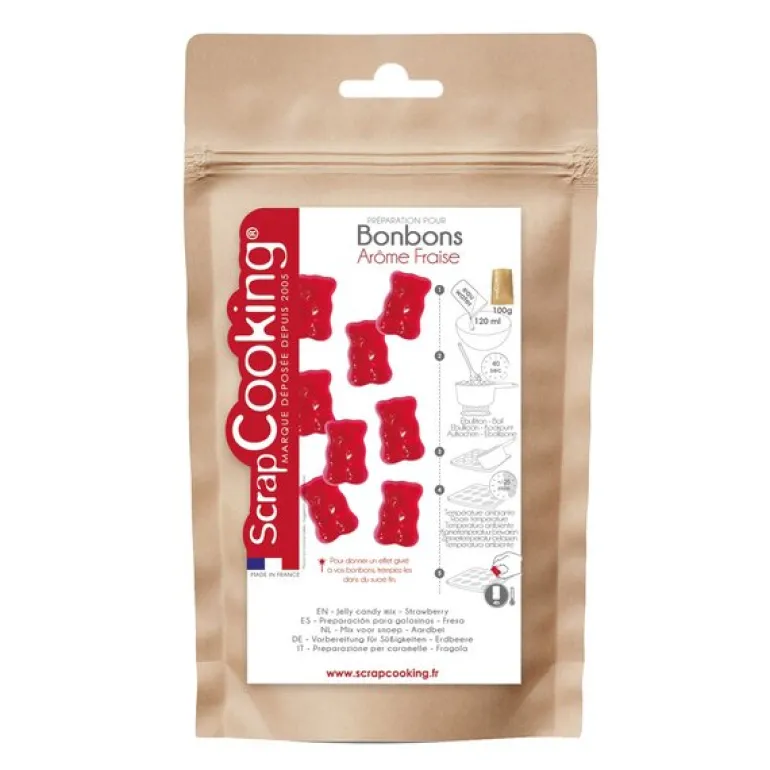 Oppdag gleden av hjemmelaget godteri med vingummimiksen fra ScrapCooking! Denne 100 g posen gir deg en fyldig jordbærsmak og en myk konsistens – perfekt til små godteribiter laget i silikonformer.