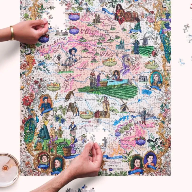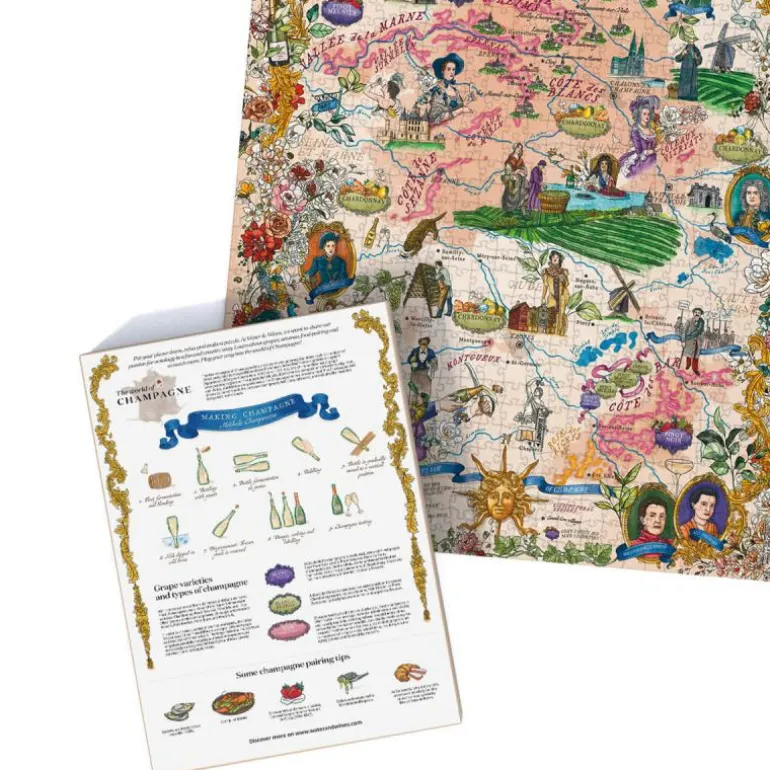 Gi deg selv muligheten til å fordype deg i den eksklusive verdenen av musserende vin med vårt Champagne-puslespill. Dette elegante puslespillet er håndillustrert og fremhever den prestisjefylte Champagne-regionen i Frankrike, hjemmet til verdens fineste champagne. Samtidig feirer det regionens rike historie og kultur. Puslespillet er nøye utvalgt i samarbeid med Master of Wine og champagnespesialist Essi Avellan. Det belyser de viktigste områdene i Champagne, inkludert alle 17 Grand Cru-landsbyene, og kartlegger de druetyper som former denne hyllede vinstilen, inkludert Chardonnay, Pinot Noir og Pinot Meunier.