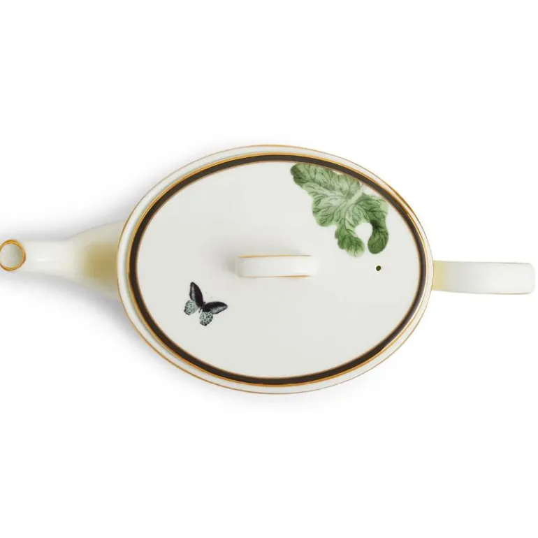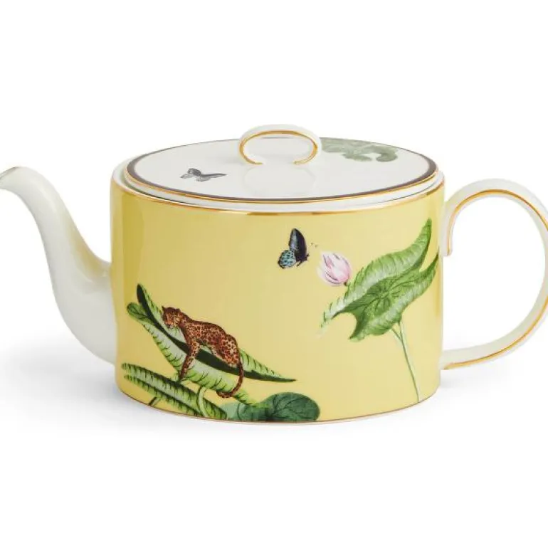 Waterlily tekanne. Utvid samlingen din med Wedgwood Waterlily tekanne. Laget av benporselen med en 22 carat gullkant. Det gamle mønsteret er inspirert av Amazonas flora og fauna. Dekk bordet ditt med denne fantastiske tekannen, designet for å servere seks kopper.Håndvask anbefales.