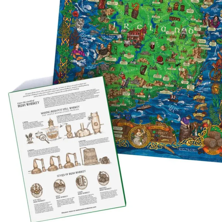 I puslespillesken finner du en vakker plakat med håndtegnede illustrasjoner og nøye utvalgte historier om irsk whiskey, sammen med en samling whiskey-cocktailoppskrifter, en guide for whiskysmaking og en irsk smaksprofil. Begi deg ut på denne ekstraordinære whiskeyreisen gjennom Smaragdøya med vårt puslespill. Slaínte!