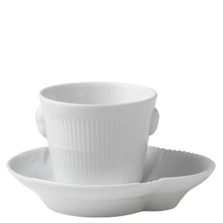 White Elements espressokopp med fat fra Royal Copenhagen rommer 10 cl og er et utsøkt valg for kaffeelskere som verdsetter både estetikk og kvalitet. Designet av Louise Campbell, forener settet klassiske linjer med moderne former i en balansert helhet. Den rene, hvite porselensoverflaten gir et elegant uttrykk og fremhever servisets subtile detaljer.