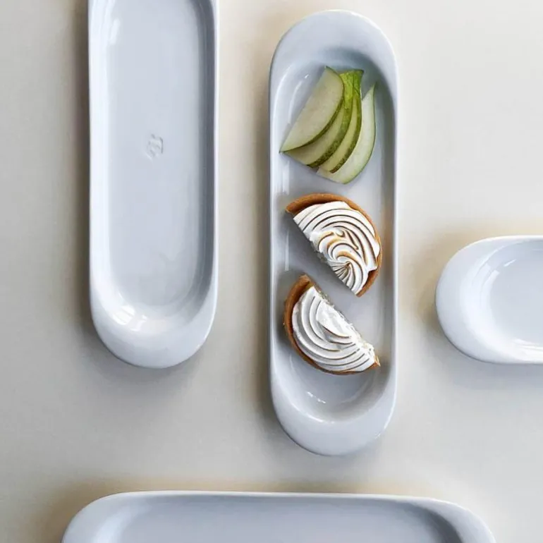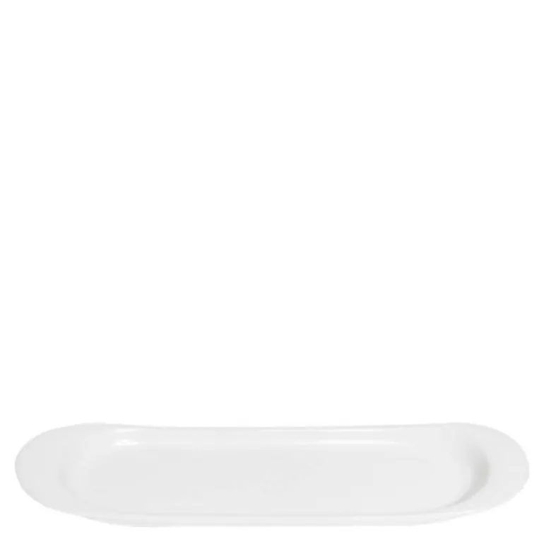 Hvitt serveringsfat 30 cm, Wing. På 1950-tallet produserte Kay Bojesen sin ikoniske fiskebrett i sølv, som senere ble introdusert i porselen. WING formspråket er identisk med originalen; lett og svevende, med fine buede kanter og avsluttende vinger som gjør den enkel og elegant. Wing har mange funksjoner, naturlig nok på kjøkkenet, på de dekkede bordene, men også rundt om i hjemmet; til smykker på nattbordet eller penner og mynter på skrivebordet.