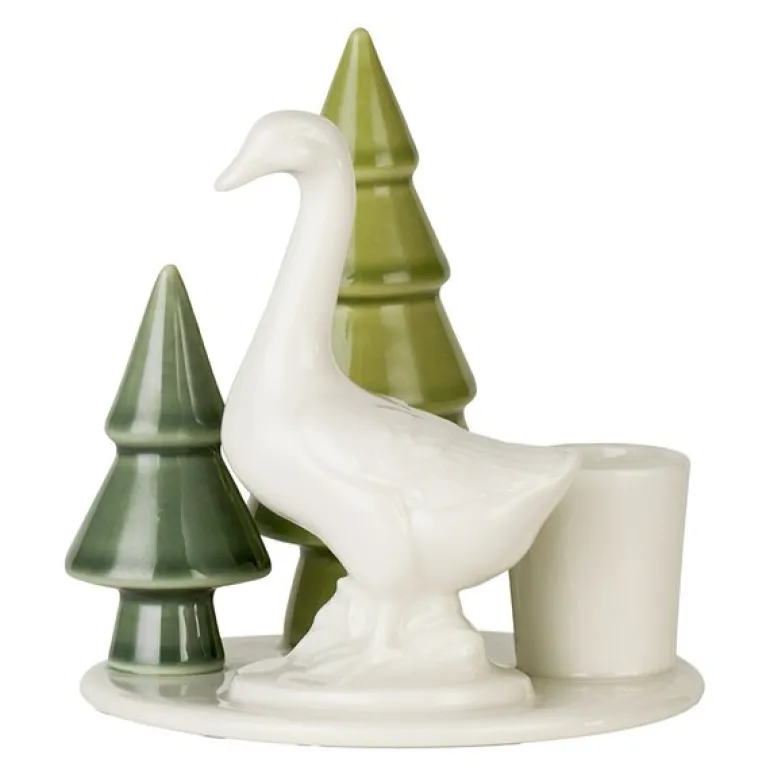 Håndlaget med stor oppmerksomhet på detaljer, viser lysestaken Dottirs forpliktelse til kvalitetsdesign. Gåsen og de omkringliggende trærne gir en elegant, men leken følelse, noe som gjør dette stykket til et flott tillegg til vinterdekorasjonen din.