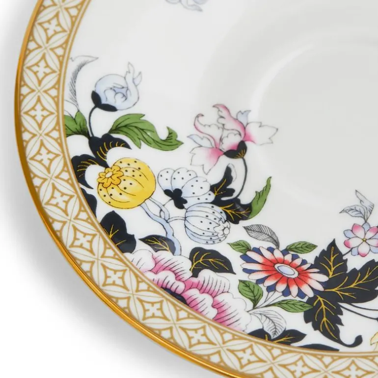 Wonderlust Tcup/Scr Primrose BXD. Ta en reise rundt i verden med Wonderlust-kolleksjonen, en eklektisk samling av mønstrede skåler, krus, middagstallerkener, duftlys, bilderammer og mer, alt inspirert av underverkene ved å reise fra Europa til Asia. Her vil du avdekke fargerike, eklektiske design inspirert av den eksepsjonelle skjønnheten til eksotiske blomster og planter fra de forskjellige kontinentene.Alle delene presenteres i vakre Wedgwood-blå gaveesker som er klare for å feire alle livets spesielle øyeblikk.