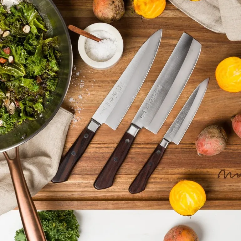 Sekiryu Wood grønnsakskniv på 12 cm, også kjent som en Pettykniv i Japan, er en uunnværlig allround-kniv som utmerker seg i presisjonsarbeid på kjøkkenet. Denne kniven er ideell for oppgaver som kutting av frukt, grønnsaker og mindre kjøttarbeid, og den gir deg nøyaktigheten du trenger for å lage perfekte retter.