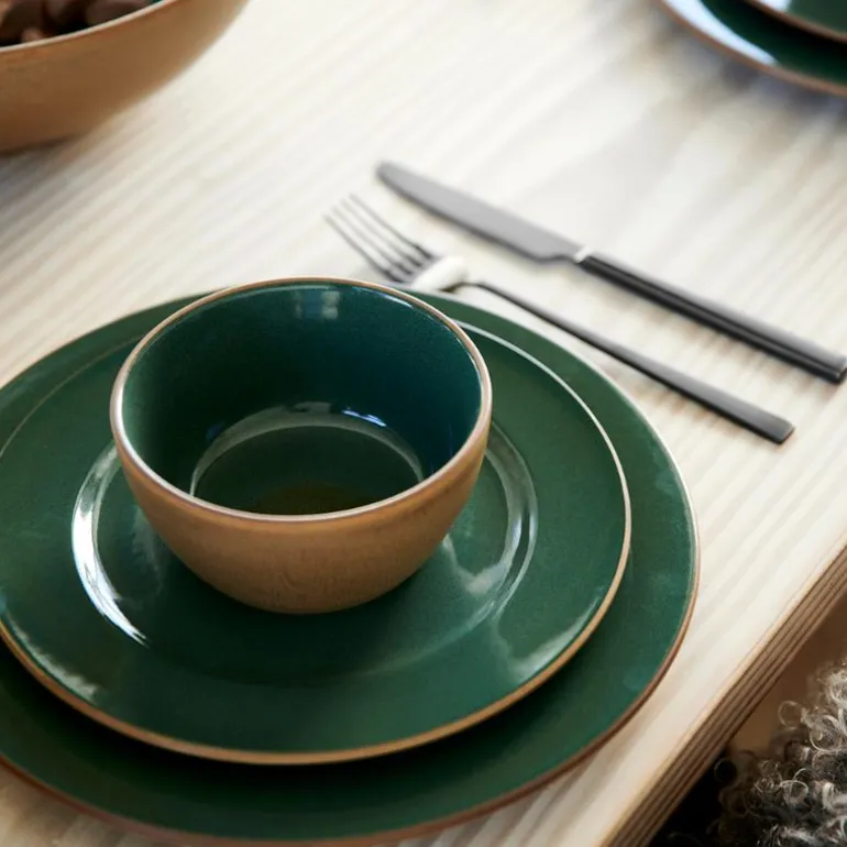 Denne 27 cm middagstallerkenen fra Bitz er skapt med et minimalistisk, nordisk design i tankene. Tallerkenens robuste steintøy og fargekombinasjon av matt brun og blank ‘forest’ gjør denne tallerkenen til et stilsikkert valg for enhver anledning.