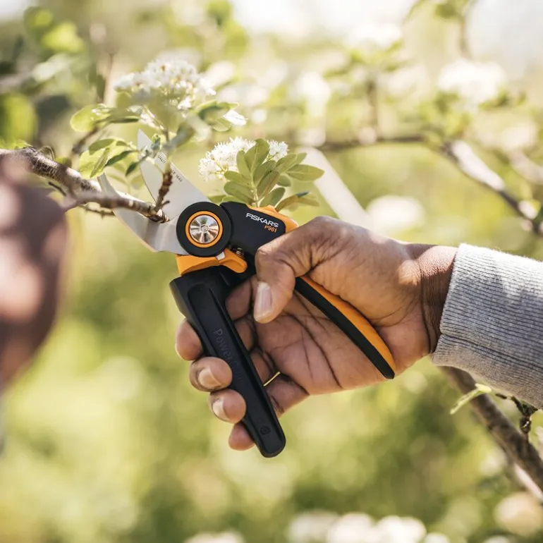 X-series™ sekatør P961 28 cm svart fra Fiskars er en beskjæringssaks med sidekutt for sunne greiner og kvister. Unik PowerGear™-mekanisme gir 3 ganger mer kraft i snittet. Det roterende håndtaket minimerer belastningen på fingrene og gir kraft til hele hånden. Laget i FiberComp™. Håndtak i SoftGrip™ for trygt og komfortabelt grep.
