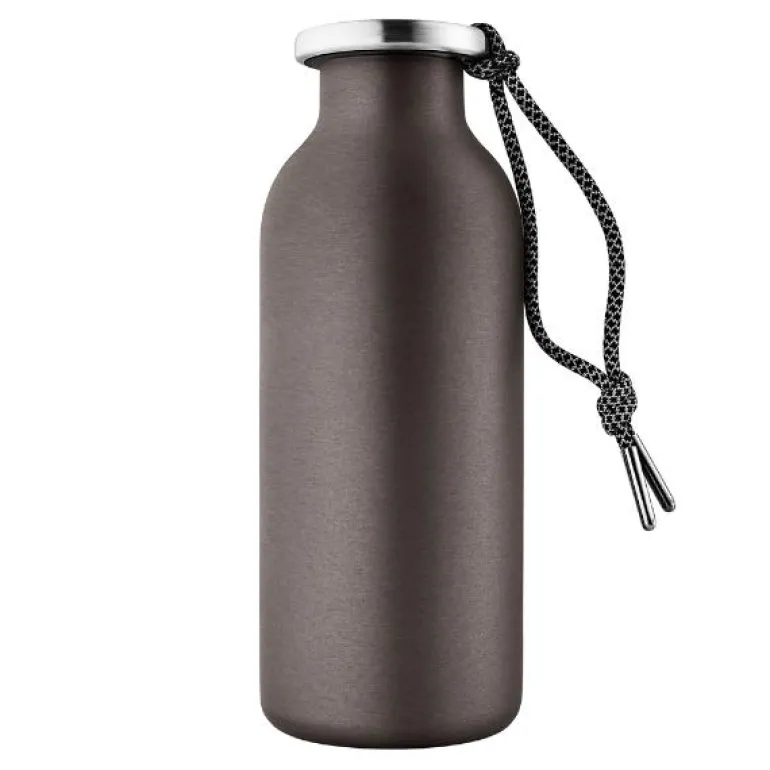 Robust termoflaske med skrulokk i stilren design. Flaskens termokonkstruksjon holder på temperaturen – kaldt i opptil 24 timer, varmt i opptil 12 timer. Skrulokket er 100 % tett, så du kan trygt ha flasken i vesken, og en integrert stropp gjør den hendig når du er på farten. Selve flasken er dessuten av rustfritt stål, som virkelig tåler slitasje og hverdagsbruk. Tåler oppvaskmaskin. Laget av rustfritt stål, plast og nylon. Mål: H: 19,5 x Ø: 7,5 cm (0,5 l.).