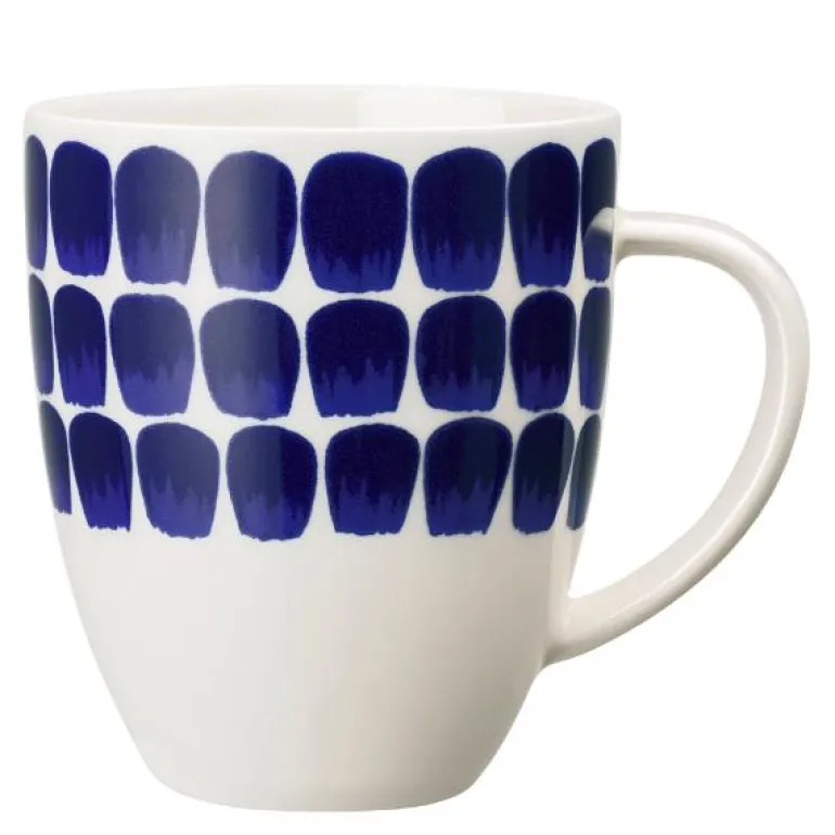 Tuokio Krus 0,34L Koboltblå. Tuokio-servisets mønster får sin rytme fra sterke penselstrøk. Mønsteret utstråler det finske og har blitt inspirert av Arabias dekorative historie, som strekker seg over 140 år. Formene på serviset kommer fra de tidløse linjene i 24h-serien. Tuokio-mønsteret passer godt inn i moderne, allsidige borddekkinger. Designere Harri Helorinne og Jarkko Kallio. Kan vaskes i oppvaskmaskin.
