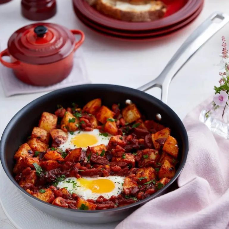 Le Creusets 3-PLY Classic-stekepanne 20cm med non-stick-belegg er spesielt godt egnet til steking av fettfattige retter, retter med egg og melk, og sart fisk. 3-PLY Classic-stekepannen med non-stick belegg er konstruert med tre-lags-teknologi: . Non-stick belegget er PFOA- og PFOS-fritt og er ytterst motstandsdyktig mot slitasje. Stekepannen har i tillegg brukervennlige detaljer som dryppfri hellekant og varmebestandige håndtak festet med nagler. Stekepannen tåler oppvaskmaskin, alle typer varmekilder inkludert induksjon, og opptil 260 °C i ovnen.