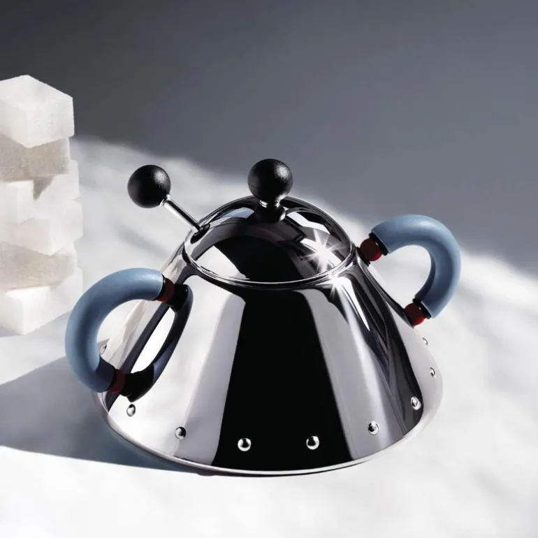Stilig sukkerskål med skje designet av Michael Graves.
