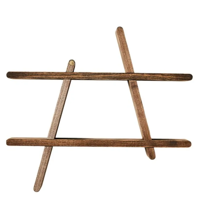 Den mørke finishen er påført som farget olje, og gir et varmt og kontrastfylt inntrykk. Den røkte overflaten lar de naturlige årene i treverket komme frem, noe som gir hyllen et levende og naturlig preg. Med nøkkelhullbeslag på baksiden henger den stødig, og festene er skjult. Maksimal belastning er 10 kg.
