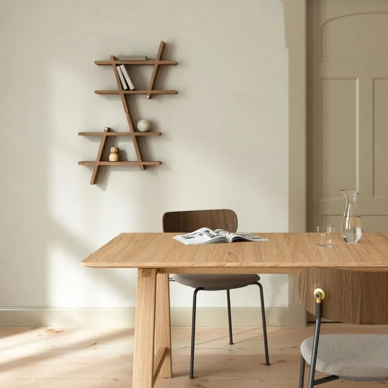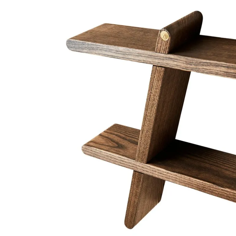 A-Shelf i massiv ask er en moderne versjon av den klassiske A-hyllen, og fungerer både som oppbevaring og som dekorativt element. Hyllen kan monteres i ulike retninger på veggen, noe som gir rom for kreative løsninger og personlig uttrykk i interiøret. Kombinert med flere hyller kan du bygge en hel vegg som gir plass til både minner og praktisk oppbevaring.