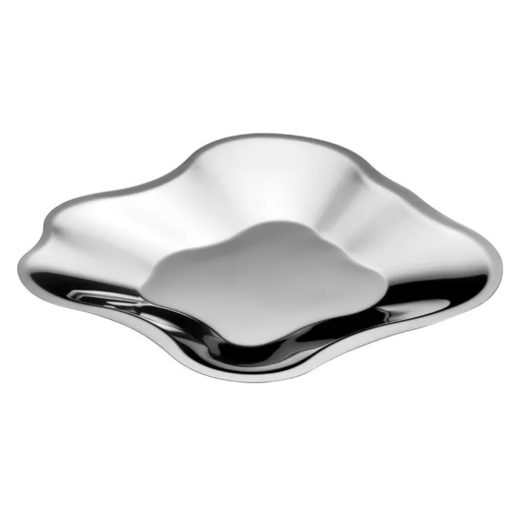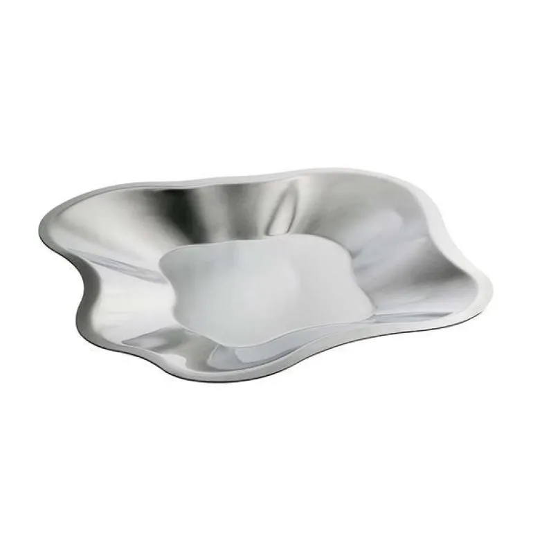 Aalto fat 358mm rustfritt stål. Aalto-vasen ble designet av den kjente arkitekten og formgiveren Alvar Aalto i 1936. Vasen blir fortsatt munnblåst på Iittala-fabrikken i Finland, og det kreves sju høyt kvalifiserte og koordinerte håndverkere for å fremstille en Aalto-vase – et ikon for moderne design. Alvar Aalto er uten tvil et av de største navnene innen moderne arkitektur og skandinavisk design. Det stilrene og tidløse fatet i rustfritt stål er en del av Alvar Aalto-kolleksjonen fra Iittala. Perfekt til servering av alle slags retter, men er også en elegant interiørdetalj. Håndvask anbefales.