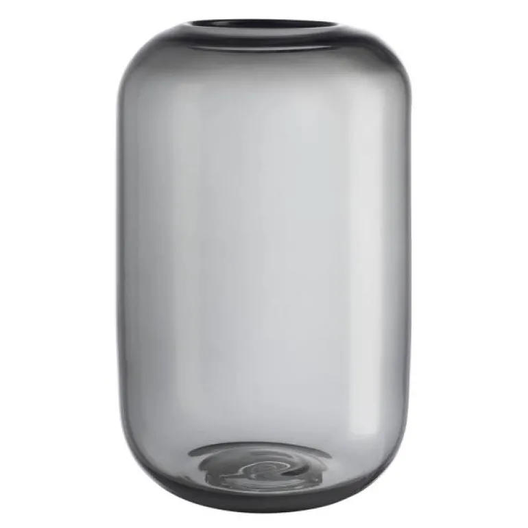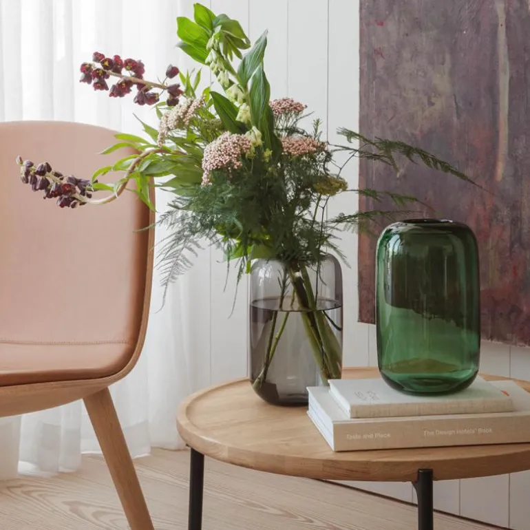 Acorn vase fra Eva Solo i ‘stone’ glass, med en høyde på 22 cm, er et stilig innslag i hjemmet. Acorn-vasens rene, organiske form gjør den til et dekorativt element, selv uten blomster. Den smale åpningen i toppen gir god støtte til blomster og kvister, slik at bukettene holder seg samlet og presenteres på en vakker måte.