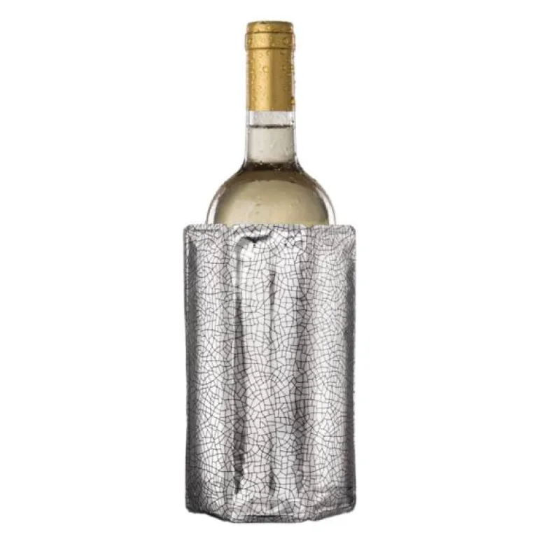 Active Cooler vinkjøler sølv fra Vacu Vin. Å kjøle ned drikker raskt og holde dem kalde er ikke lenger et problem når du bruker dette produktet! De fantastiske Active Cooler-kjølerne beskrives best som en superkald fleksibel isjakke. Du tar den ut av fryseren og setter den ganske enkelt på flasken. Drikken kjøles ned på 5 minutter og holdes kaldt i timevis. Kjølekragen er uknuselig og gjenbrukbar.