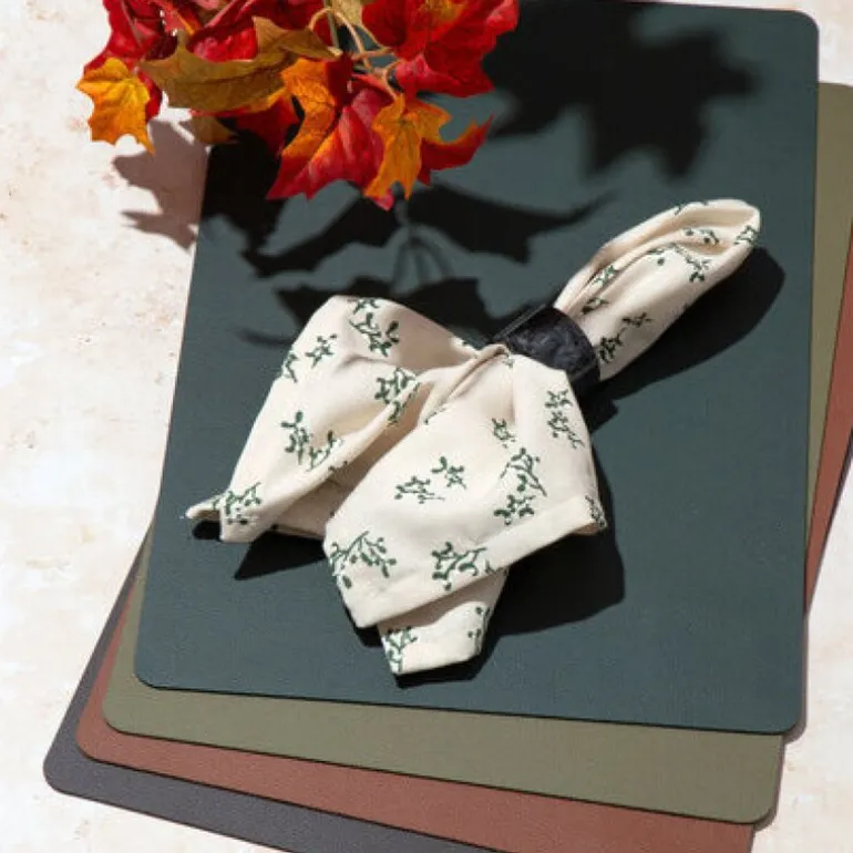 Skap en raffinert atmosfære rundt spisebordet med Adine Stoffserviett fra Holmen. Denne servietten i naturfarge med grønne detaljer tilfører en frisk og naturlig følelse til borddekkingen.