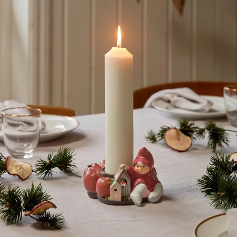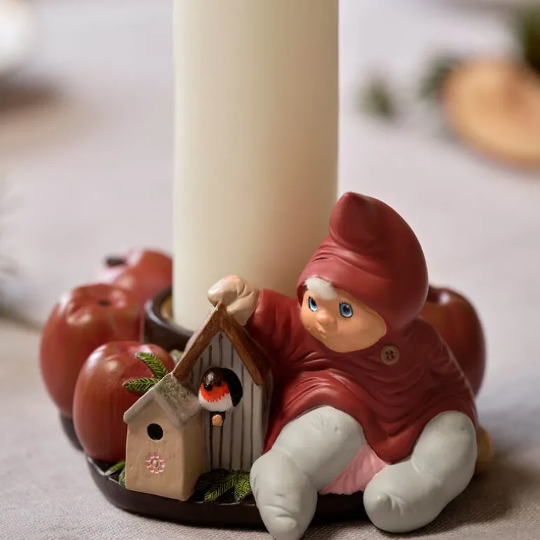 Naturen er hennes hjem, og dyrene flokker seg rundt henne. Selv småfuglene kjenner henne igjen når hun kommer med epler og frø. En vakker lysestake som sprer varme og omtanke i førjulstiden.