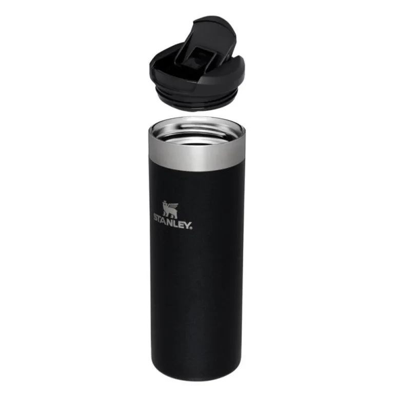 Svart termokopp, Aerolight 35 cl, fra Stanley. Denne slanke termokoppen er konstruert for pendling og er en tredjedel lettere enn Stanleys standard flasker i rustfritt stål. Hemmeligheten er Stanleys AeroLight™ fjærvektsteknologi som ikke går på kompromiss med holdbarhet eller termisk ytelse. Vannet ditt vil holde seg kaldt fra du forlater hjemmet til du kommer hjem igjen. Drikkelokket låses fast for lekkasjesikker bæring i vesken eller sekken. Med dobbeltveggs vakuumisolering holder den drikken din varm i 8 timer og kald i 12 timer. Denne slanke, allsidige og lekkasjesikre koppen vil passe godt til deg som pendler – om det er i bilen, på bussen, eller sykkelen.