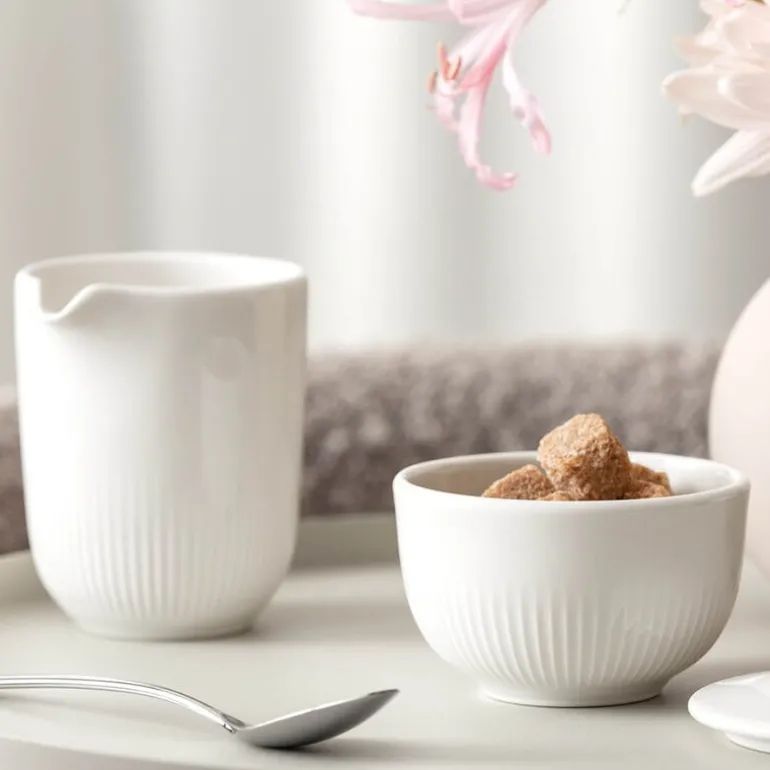 Afina fløtemugge 17 cl i hvitt porselen fra Villeroy & Boch kombinerer funksjon og eleganse. Med sitt fine, ringformede relieff inspirert av solens stråler skaper den en taktil og visuell opplevelse ved bordet.