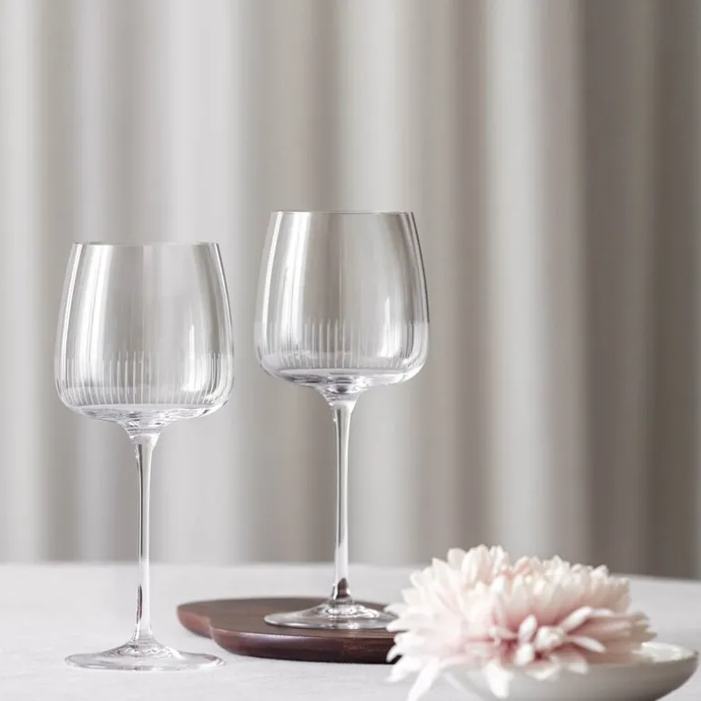 Afina rødvinsglass fra Villeroy & Boch i klart krystall, 4 stk på 20 cl, kombinerer eleganse med subtil detalj. Graveringen inspirert av solstråler gir en visuell dybde som løfter enhver borddekking. Laget i Europa og preget av solid håndverk og raffinert design – et utmerket valg for deg som ønsker et moderne og gjennomført uttrykk til vinsmakingen.