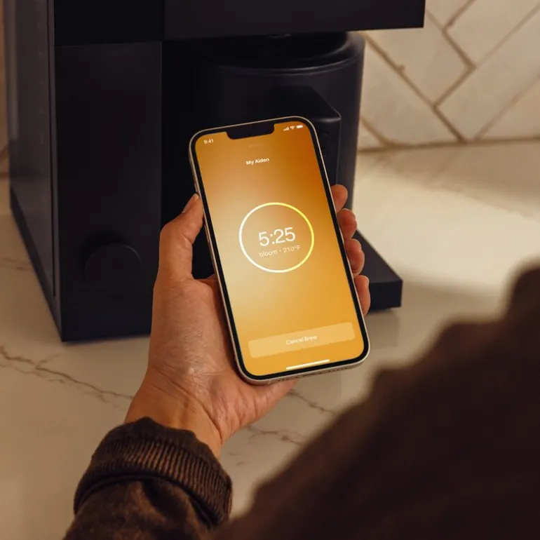For enda mer presisjon og tilpasning kan Aiden Precision kobles til en dedikert app som gir deg tilgang til de nyeste oppdateringene og avanserte funksjoner. Appen åpner for fremtidige oppgraderinger, inkludert delbare bryggeprofiler og full mobilkontroll, noe som gjør det enkelt å administrere bryggingen direkte fra smarttelefonen din.