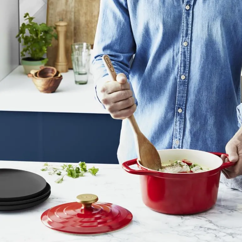 Air Gryte 3,1L 20 cm Rød fra Tefal er en kraftig gryte som gir deg alle fordelene med en tradisjonell støpejernsgryte, men i en lett og moderne design. Denne gryten er laget av støpt aluminium, som er tre ganger lettere enn klassiske støpejernsgryter.