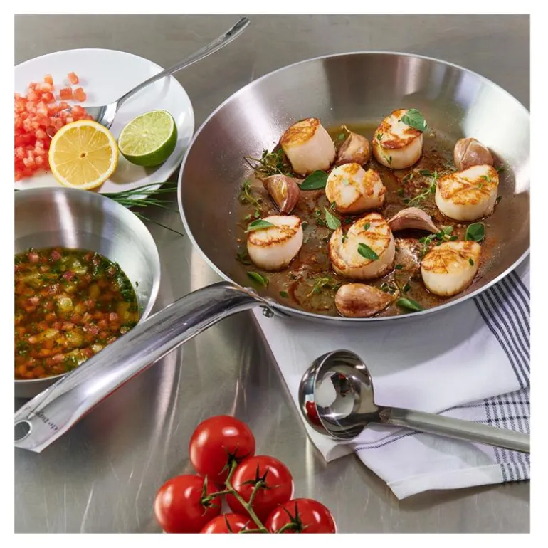 Alchimy har en 3-lags konstruksjon som garanterer rask respons på temperaturjusteringer og jevn varmefordeling. Den er kompatibel med alle varmekilder, inkludert ovn og induksjon. Vår unike flerlags teknologi eliminerer klebing og behovet for konstant omrøring. Kapasitetsmerkene risset inn på innsiden gjør måling enkelt uten behov for ekstra verktøy. Med et ergonomisk grep som er kjølig å ta på og en dryppfri hellerand, kan du håndtere den med letthet. Den børstede, halvblanke finishen er motstandsdyktig mot merker og tilfører et rent, sofistikert og klassisk preg på kjøkkenet ditt.