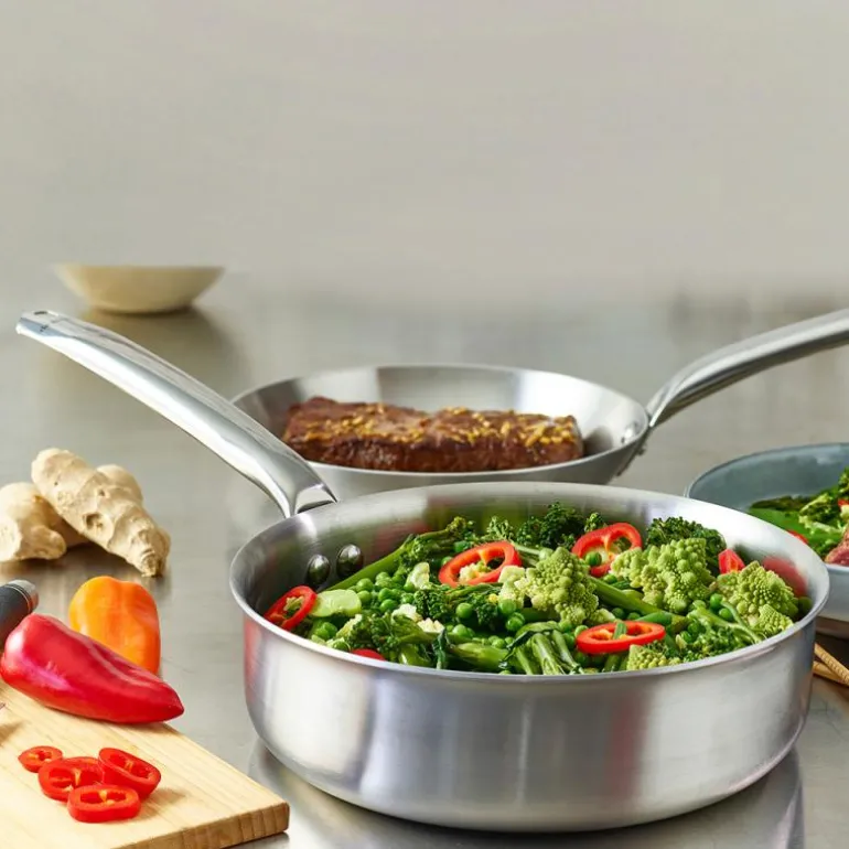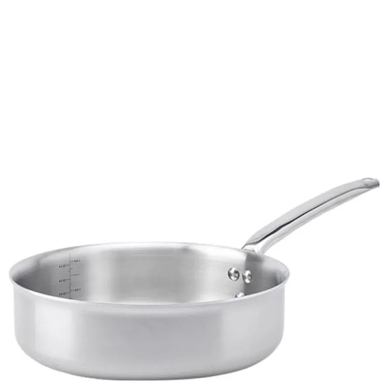 Alchimy har en 3-lags konstruksjon som garanterer rask respons på temperaturjusteringer og jevn varmefordeling. Den er kompatibel med alle varmekilder, inkludert ovn og induksjon. Vår unike flerlags teknologi eliminerer klebing og behovet for konstant omrøring. Kapasitetsmerkene risset inn på innsiden gjør måling enkelt uten behov for ekstra verktøy. Med et ergonomisk grep som er kjølig å ta på og en dryppfri hellerand, kan du håndtere den med letthet. Den børstede, halvblanke finishen er motstandsdyktig mot merker og tilfører et rent, sofistikert og klassisk preg på kjøkkenet ditt.