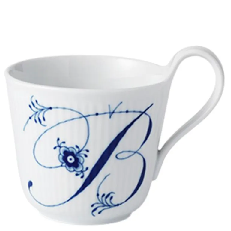 Høyhankskruset alfabet B på 33 cl er en Royal Copenhagen-klassiker, og hvorfor ikke sette et ekstra personlig preg på favorittkoppen din? På dette Alfabet-kruset med bokstav er de delikate palmettene og blomstene fra Musselmalt Riflet-kolleksjon vakkert integrert i bokstaven og håndmalt i klassisk koboltblå.