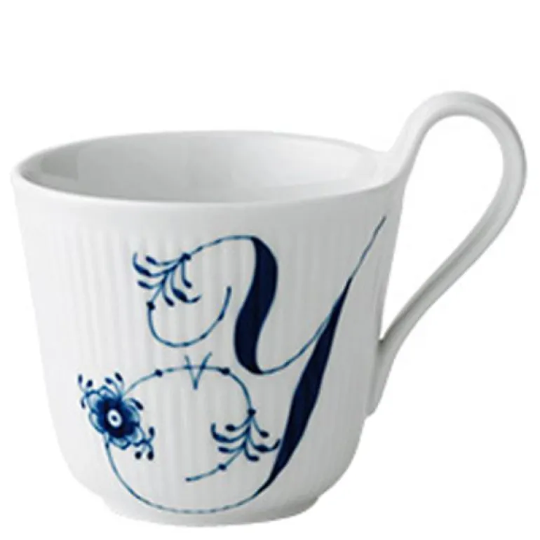 Høyhankskruset alfabet Y på 33 cl er en Royal Copenhagen-klassiker, og hvorfor ikke sette et ekstra personlig preg på favorittkoppen din? På dette Alfabet-kruset med bokstav er de delikate palmettene og blomstene fra Musselmalt Riflet-kolleksjon vakkert integrert i bokstaven og håndmalt i klassisk koboltblå.