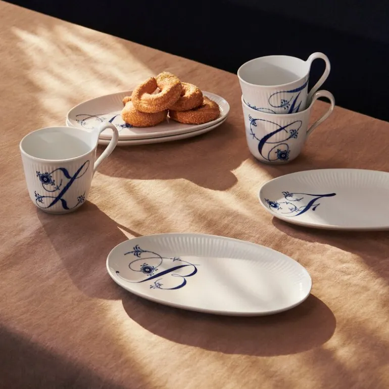 Denne ovale Alfabet tallerkenen D på 23 cm fra Royal Copenhagens Alfabetkolleksjon er den perfekte personlige gaven til noen du setter pris på. Tallerkenen er håndmalt med en ‘D’, dekorert med vakre palmetter og en delikat krysantemum som slynger seg rundt bokstaven.