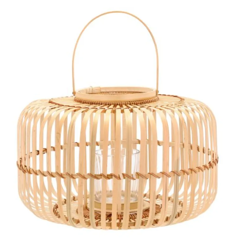 Alia lanterne 38×25 cm natur, fra Villa Collection. Denne vakre, håndlagde lykten sprer et varmt og innbydende lys i hagen, på terrassen eller ved inngangsdøren. Lykten har et praktisk håndtak og en solid glassinnsats.