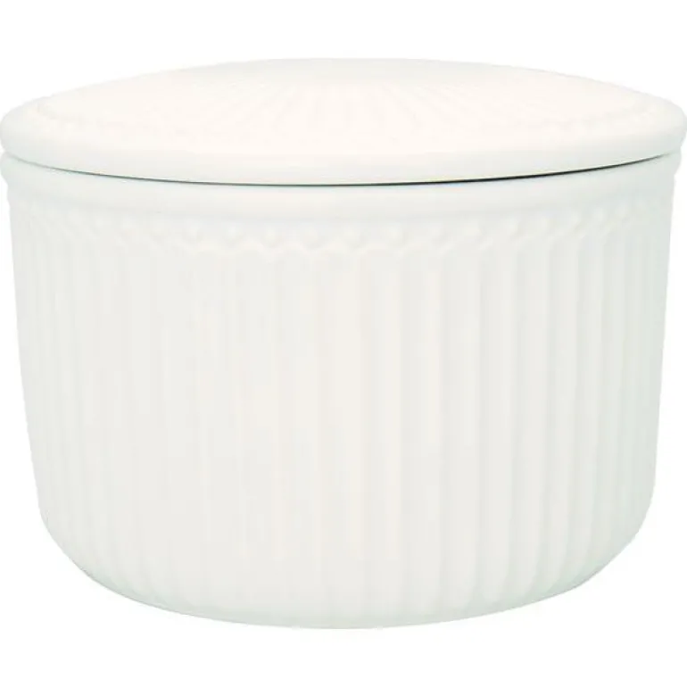 GreenGate Oppbevaringskrukke Alice white er preget med fine detaljer som gir en ekstra dimensjon. Lag ditt eget unike utseende ved å blande Hverdagsprodukter med våre klassiske design.
