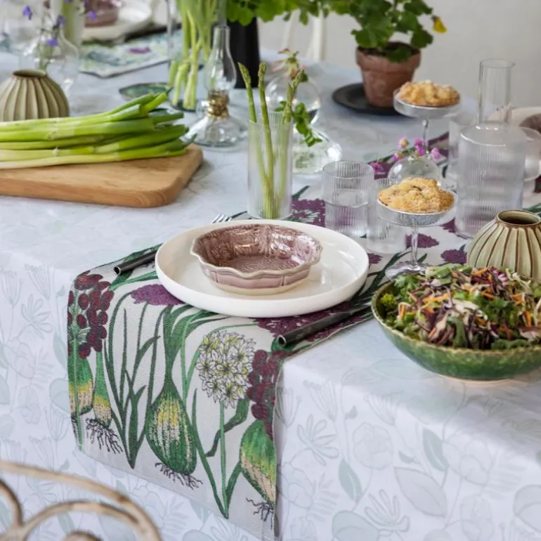 Allium bordløper i størrelsen 35×120 cm fra Ekelund gir en enkel og stilren måte å løfte borddekkingen på. Den fungerer like godt alene rett på bordflaten som lagt over en duk. Med sin lilla nyanse og subtile mønster kan den brukes både på langs og tvers, og gir mulighet for variasjon og en mer personlig stil i borddekkingen.