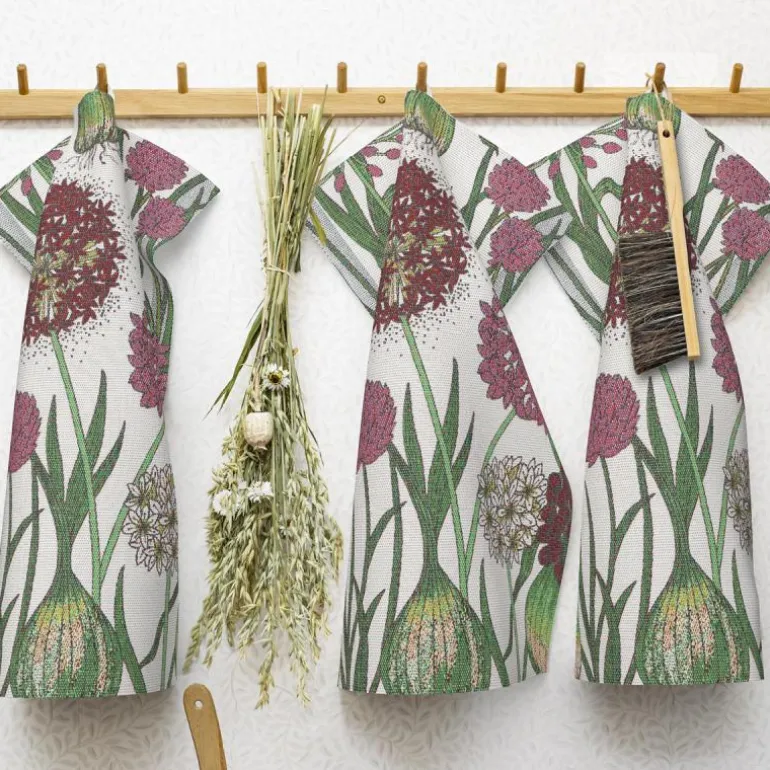 Allium kjøkkenhåndkle fra Ekelund i lilla er en funksjonell og dekorativ tekstil som passer godt inn i både moderne og tradisjonelle hjem. Med målene 35×50 cm er det praktisk i bruk på kjøkkenet, samtidig som det tilfører et visuelt løft med sitt dempede mønster og behagelige fargevalg.