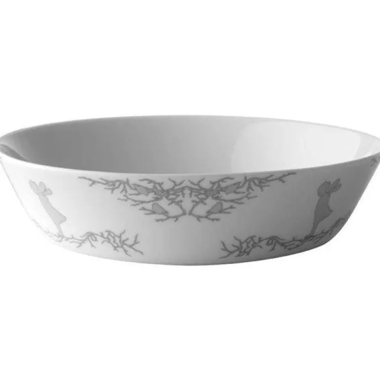Bolle i serviset Alv fra Wik & Walsøe. Inspirert av troen på det umulige. Alvene beskrives av designerne selv som skogens engler, og serviset er preget nettopp av grener, fugler og silhuetten av denne flyktige skikkelsen. Delikate tegninger i lys grå mot en hvit bakgrunn.