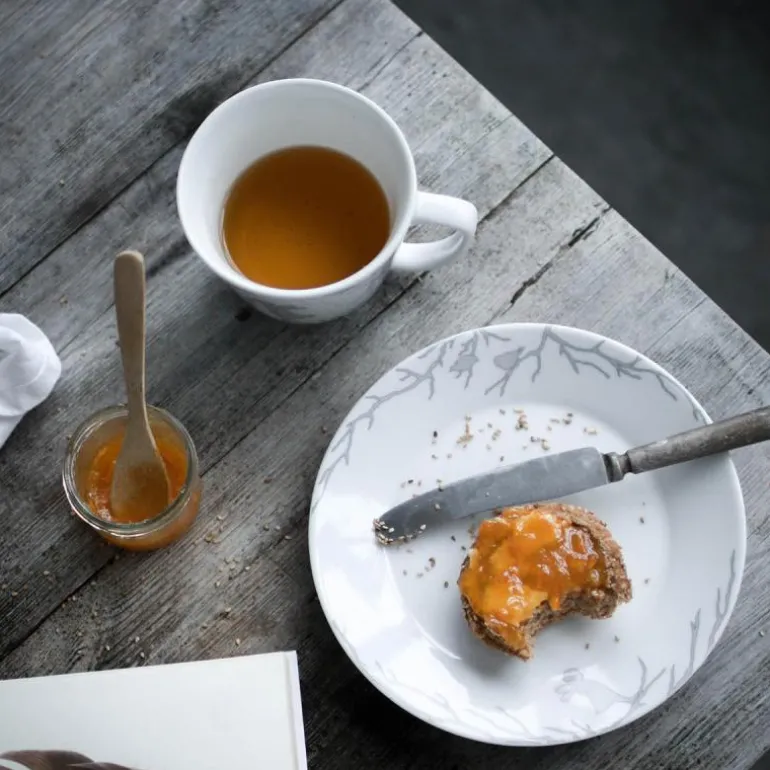 Tekoppene er laget av edelt feltspatporselen bestående av rene naturlige råstoffer som kvarts, feltspat og kaolin (hvitbrennende leire). Vi kaller det foredlet grunnfjell. Feltspatporselenet er 100 % tett, svært hygienisk og vil aldri krakelere. Porselenet kjennetegnes ved sin hvithet, vakre glansfulle glasur, gjennomskinnelighet og rene klang. Feltspat egner seg godt til hverdagsbruk. og kan fint brukes i mikrobølgeovn. Det kan også settes i stekeovnen, men man bør da være oppmerksom på at store temperatursvingninger kan forårsake termosjokk, slik at gjenstanden knuser.