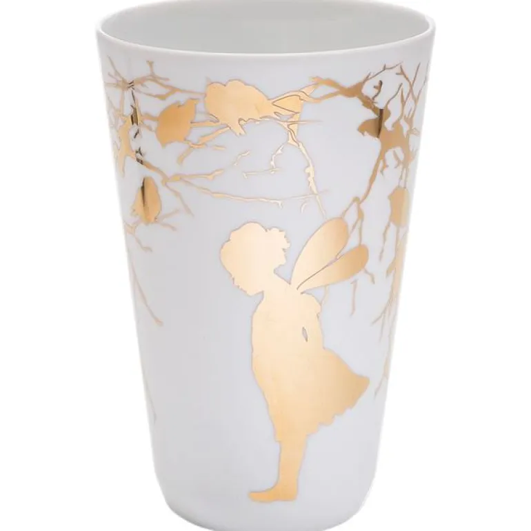 Alv vase 26 cm i gull fra Wik & Walsøe er et elegant blikkfang som kombinerer symbolikken til alven – drømmer, håp og troen på å gjøre det umulige mulig – med et tidløst design. Vasen er en del av Alv-seriens gavesortiment og er utsmykket med en metallisk gulldekor som vakkert fanger og reflekterer lyset. Med sin generøse størrelse er den ideell for store buketter, men den kan også stå alene som en dekorativ detalj i hjemmet.