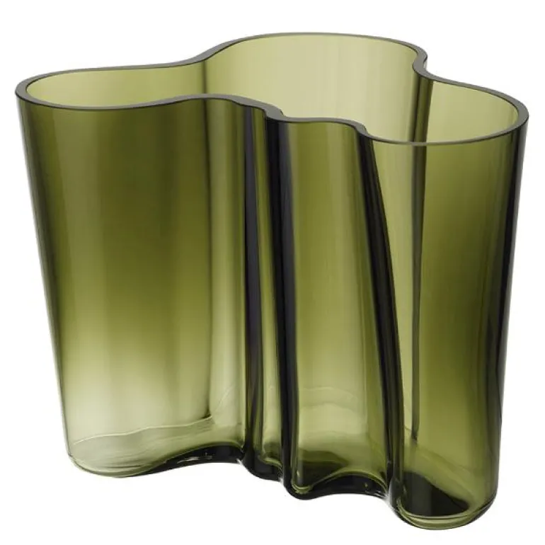 Aalto vase 160mm mosegrønn. Siden 1937 har Aaltos bølger blitt et tidløst symbol på skandinavisk interiørdesign. Hver ikoniske Aalto-vase er munnblåst, og deretter kuttet for hånd før den går gjennom flere poleringer på Iittalas glassfabrikk. Glassvasene et fantastisk dekorelementer til ethvert interiør i hjemmet. Fargen mosegrønn tilfører en naturlig enkelhet. Designer Alvar Aalto. Kan vaskes i oppvaskmaskin.