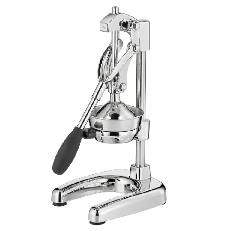 Den profesjonelle AMALFI-juiceren fra Cilio lar deg nyte presset sitrusfrukt på kort tid. Den er laget av solid metall og står trygt med fire sugeføtter. Det lange håndtaket utnytter giringen optimalt, slik at du får mest mulig ut av appelsiner, sitroner, lime eller grapefrukt, uten store anstrengelser. Trakter og presskjegler i rustfritt stål kan enkelt tas av og settes i oppvaskmaskinen etter bruk.