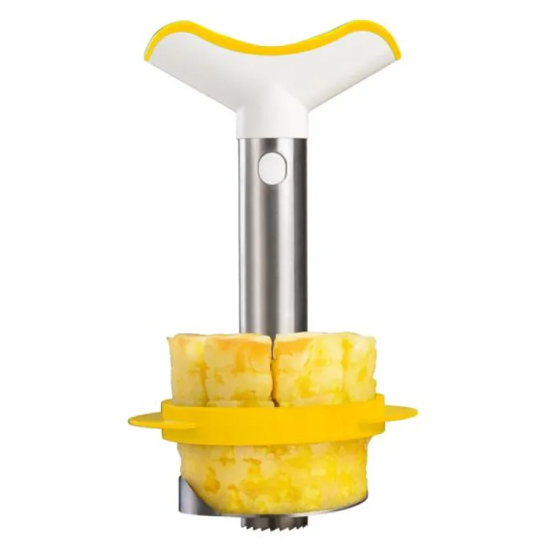 Vacu Vin’s Ananasskjærer og deler i hvit/gul rustfritt stål er et pålitelig verktøy for enkelt å skjære og servere deilige ananas. Den originale ananasskjæreren fra Vacuvin ble introdusert allerede i 1992. Til tross for sin 25 år lange historie har denne innovative ideen fortsatt å utvikle seg, og den har blitt et populært produkt brukt over hele verden. Gjennom årene har ananasskjæreren blitt forbedret og tilpasset, og den fortsetter å være et uunnværlig kjøkkenredskap for alle som ønsker å nyte frisk ananas på en enkel og effektiv måte.