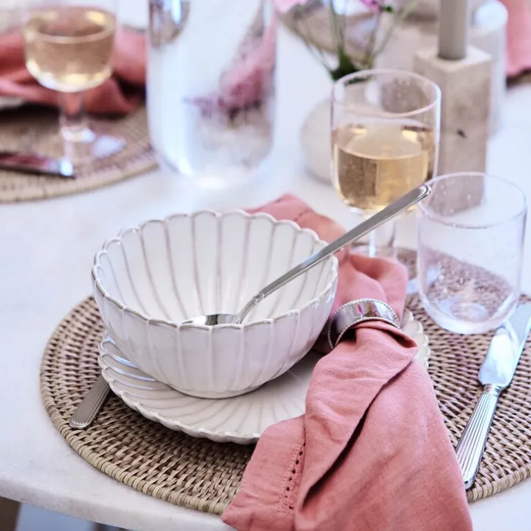 Servietten er laget av 100 % bomull, noe som gir den en myk, men slitesterk kvalitet som holder seg fin over tid. Det subtile faldmønsteret tilfører en klassisk og tidløs detalj, og den kan enkelt vaskes i maskin for praktisk vedlikehold.