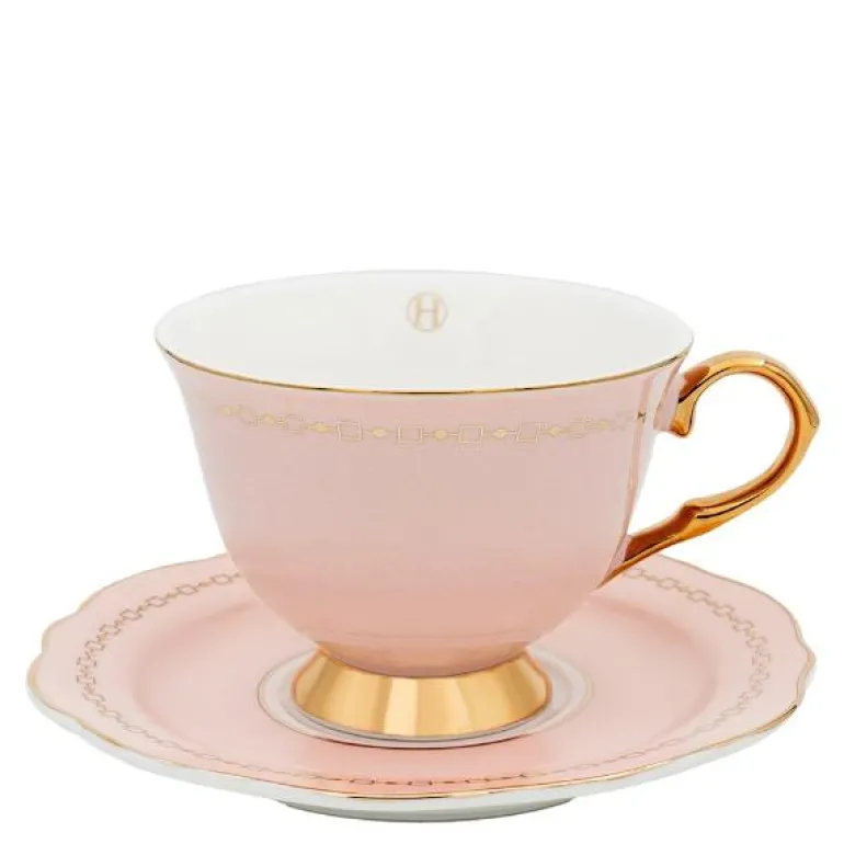 Anima Cielo kopp og tallerken rosa. Skap en følelse av luksus og eleganse med Hilke Collection. Dette settet består av en vakker kopp og tilhørende fat. Laget av New bone china, er dette serviset av høy kvalitet og gir deg en eksklusiv opplevelse hver gang du bruker det.
