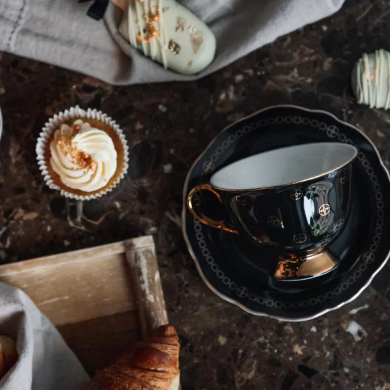 Anima Gemella Nero kopp og tallerken svart. Skap en følelse av luksus og eleganse med Hilke Collection. Dette settet består av en vakker kopp og tilhørende fat. Laget av New bone china, er dette serviset av høy kvalitet og gir deg en eksklusiv opplevelse hver gang du bruker det.