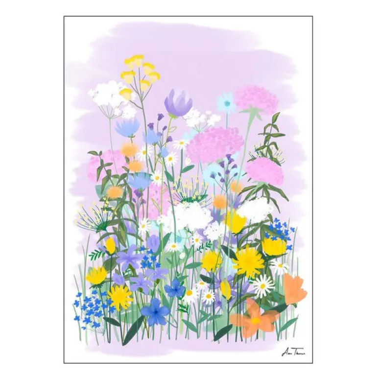 Anna Thomsen poster 50×70 cm field of flowers no2 fra Poster & Frame. Et digitalt kunstverk inspirert av tradisjonelle medier og hvordan disse kan endres når de brukes digitalt. En serie malerier basert på tenkte blomsterfelt.