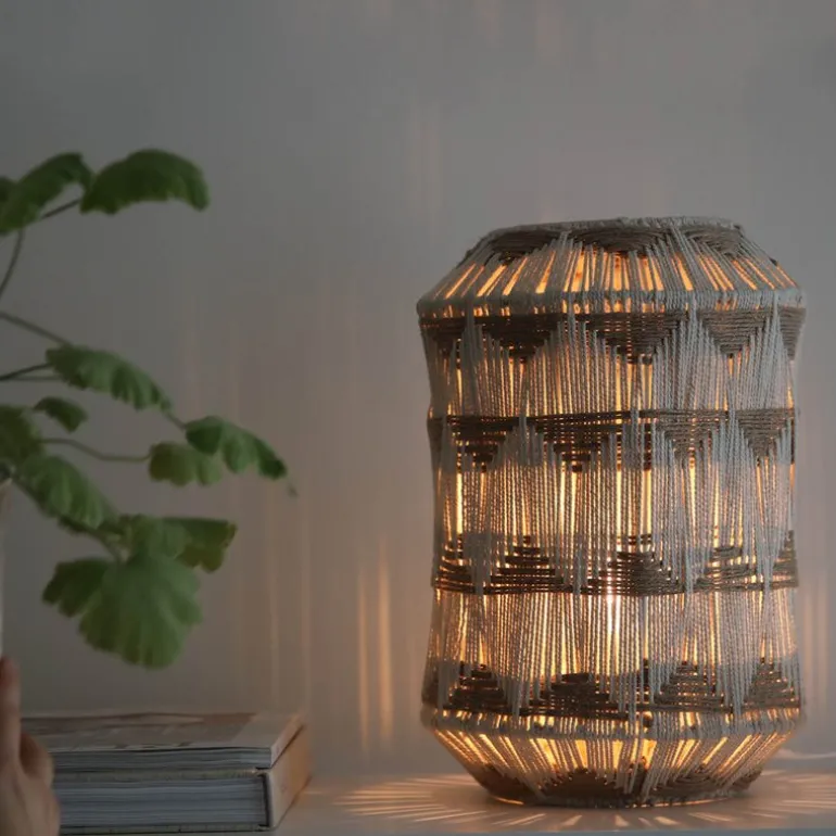 Ano bordlampe 35 cm i beige/brun fra Markslöjd er en unik og håndlaget lampe som kombinerer naturlige materialer og tradisjonelt håndverk. Skjermen, laget av jute og bomull, er vevd for hånd ved å vikle tråd rundt en stålramme, noe som gir hver lampe sitt eget særpreg.