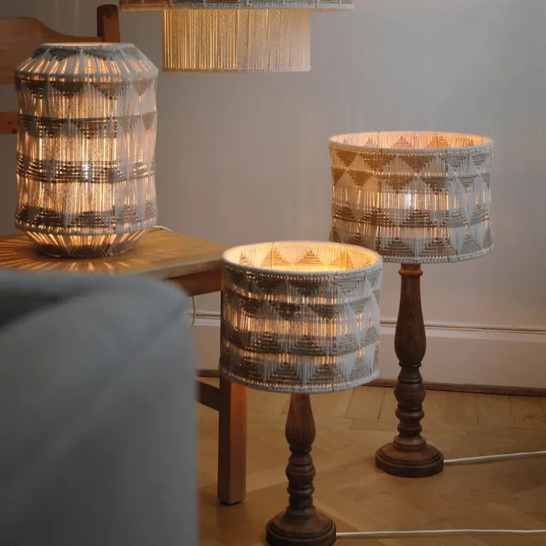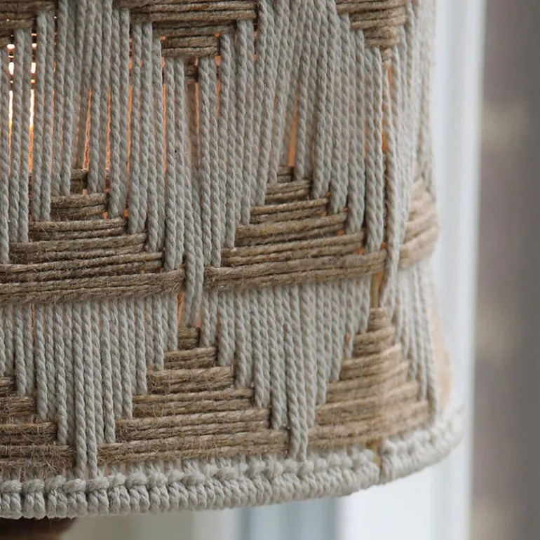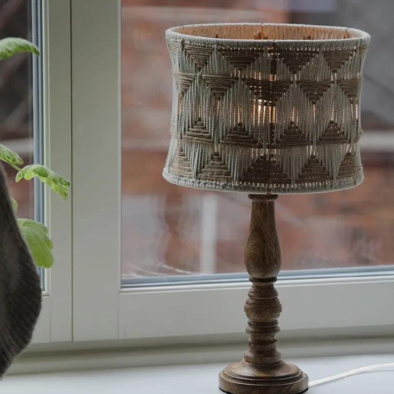 Ano bordlampe 45 cm beige/brun fra Markslöjd er en stilfull kombinasjon av naturlige materialer og moderne design, perfekt for ethvert interiør. Lampens solide fot er laget av brun mango, som gir et varmt, rustikt uttrykk og samtidig en følelse av kvalitet. Den unike skjermen består av en metallramme kledd med beige bomullstråd og naturfarget jute, arrangert i et dekorativt mønster.