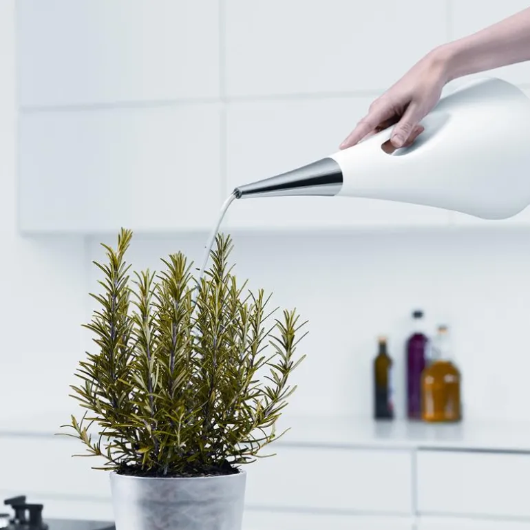 Denne stilrene hvite vannkannen er designet for å stå fremme, slik at du alltid har den lett tilgjengelig. Den spisse tuten gir presis vanning, selv i små krukker, og sikrer en jevn og kontrollert vannstråle.